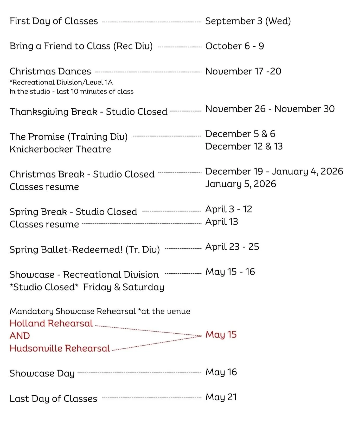 2025 – 2026 Program Calendar